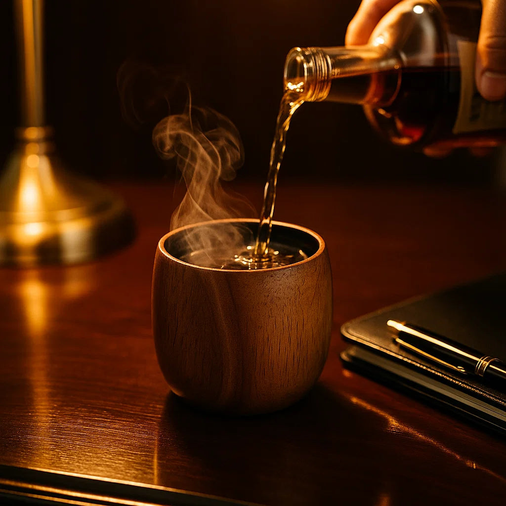 Hand-crafted wooden tumbler designed to elevate bourbon with natural wood aroma and a smooth, refined drinking experience.